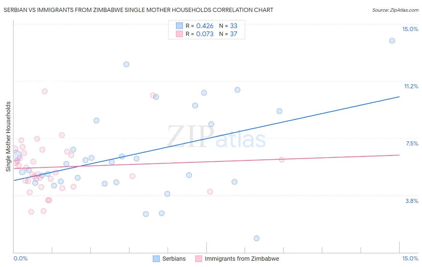 Serbian vs Immigrants from Zimbabwe Single Mother Households Correlation Chart