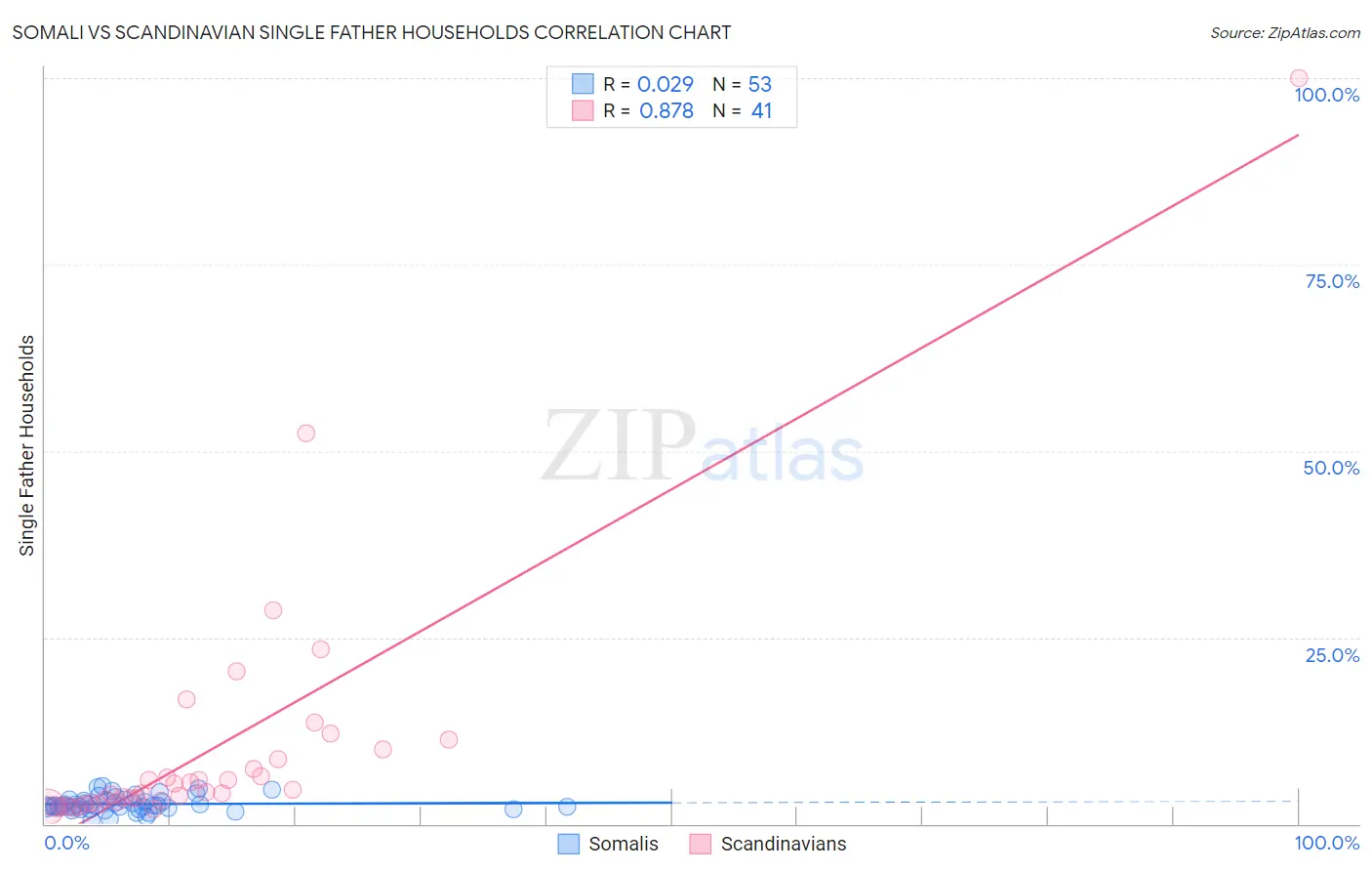 Somali vs Scandinavian Single Father Households Correlation Chart