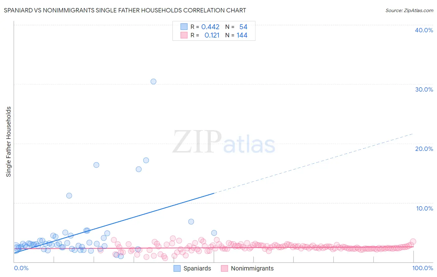 Spaniard vs Nonimmigrants Single Father Households Correlation Chart