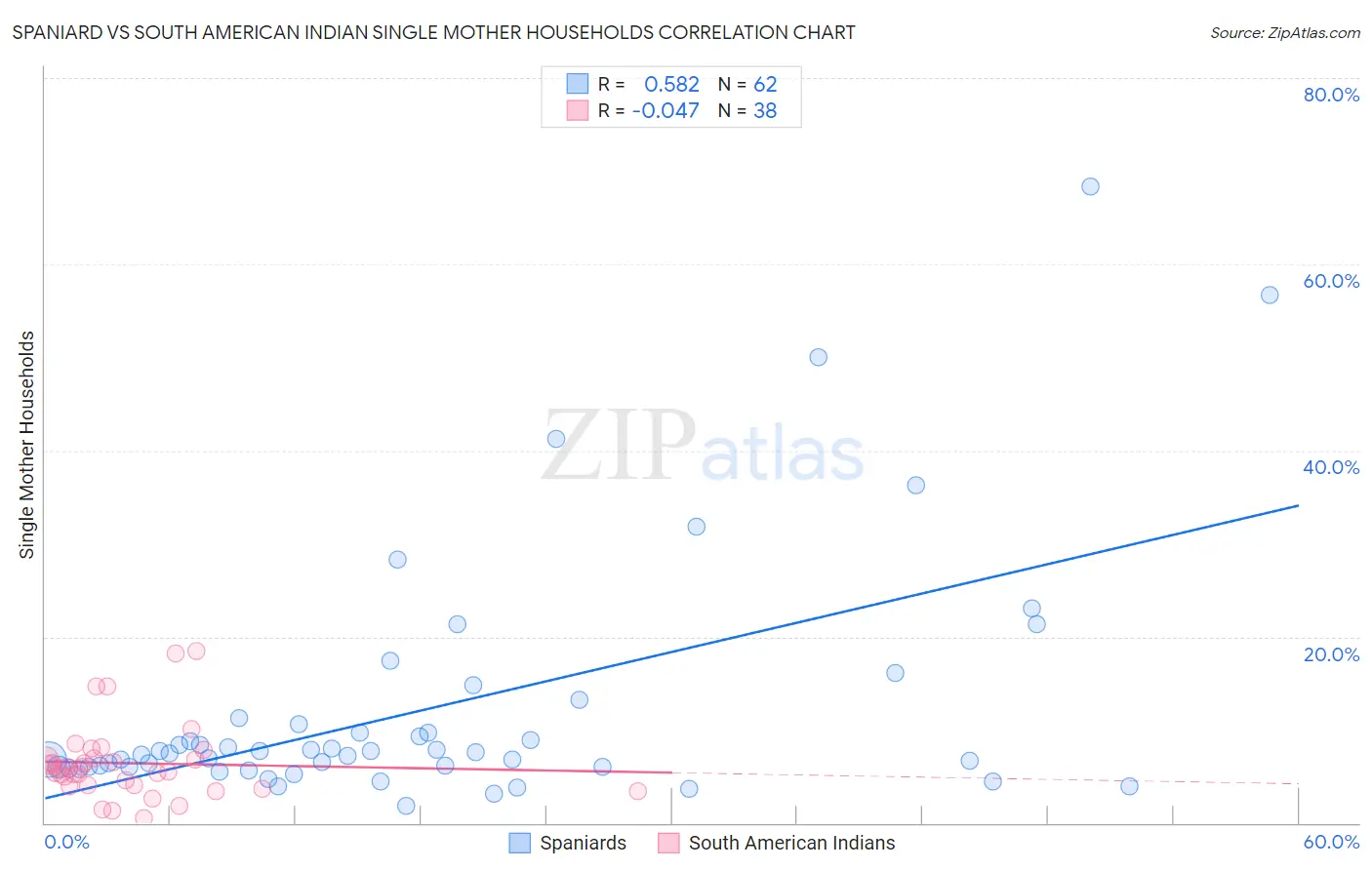 Spaniard vs South American Indian Single Mother Households Correlation Chart