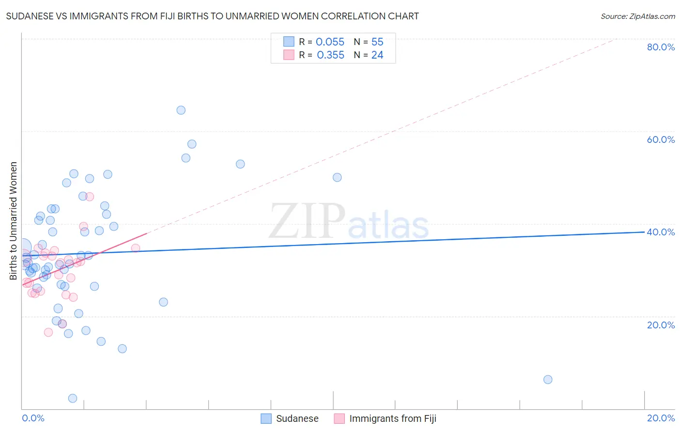 Sudanese vs Immigrants from Fiji Births to Unmarried Women Correlation Chart