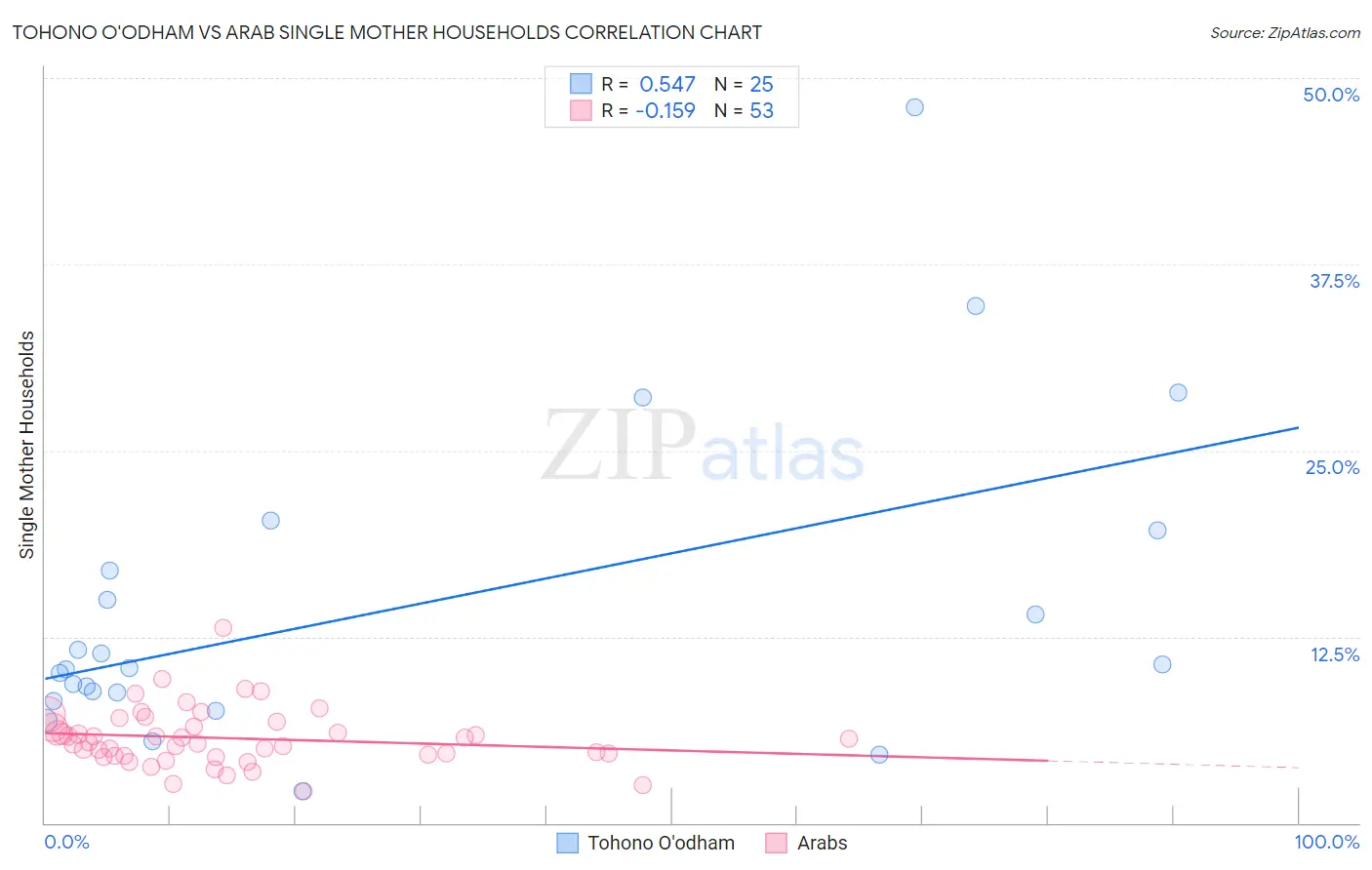 Tohono O'odham vs Arab Single Mother Households Correlation Chart
