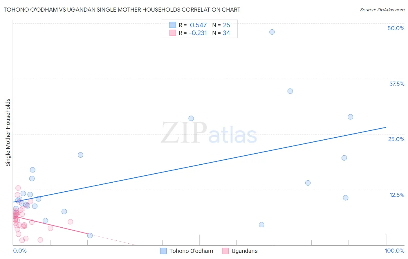 Tohono O'odham vs Ugandan Single Mother Households Correlation Chart