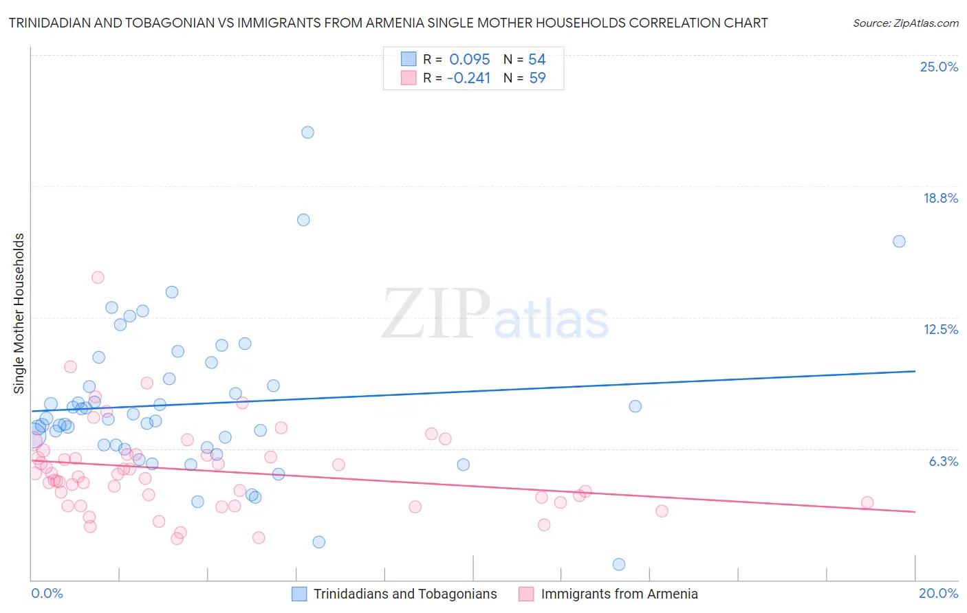 Trinidadian and Tobagonian vs Immigrants from Armenia Single Mother Households Correlation Chart