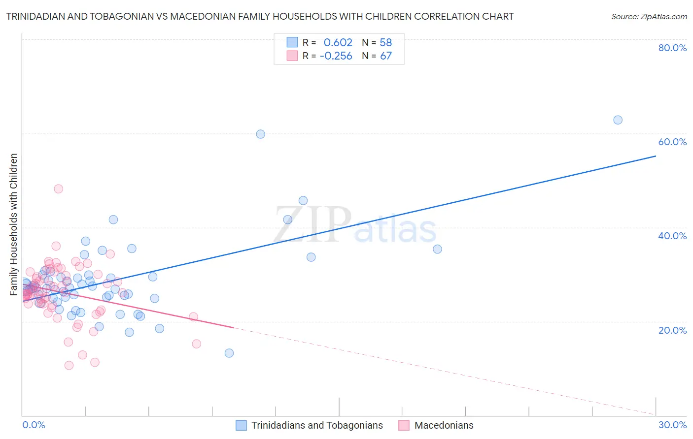Trinidadian and Tobagonian vs Macedonian Family Households with Children Correlation Chart