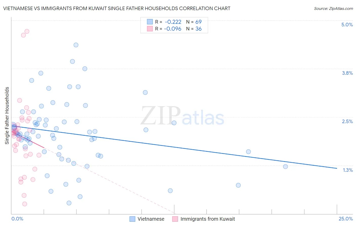 Vietnamese vs Immigrants from Kuwait Single Father Households Correlation Chart