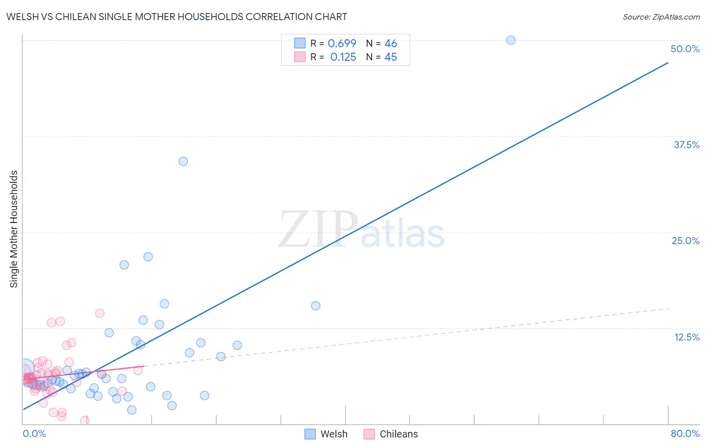 Welsh vs Chilean Single Mother Households Correlation Chart