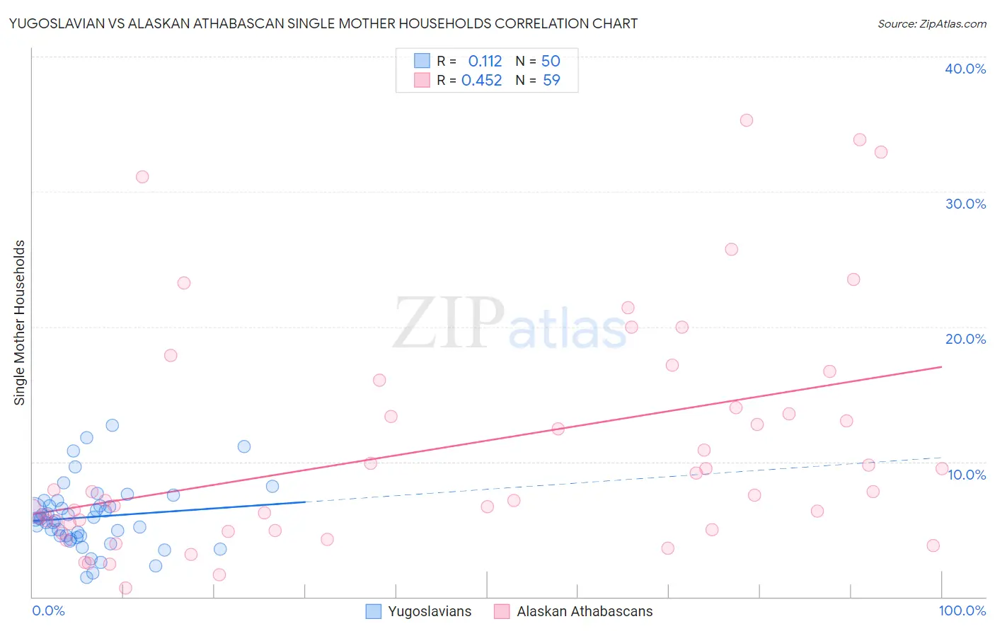 Yugoslavian vs Alaskan Athabascan Single Mother Households Correlation Chart