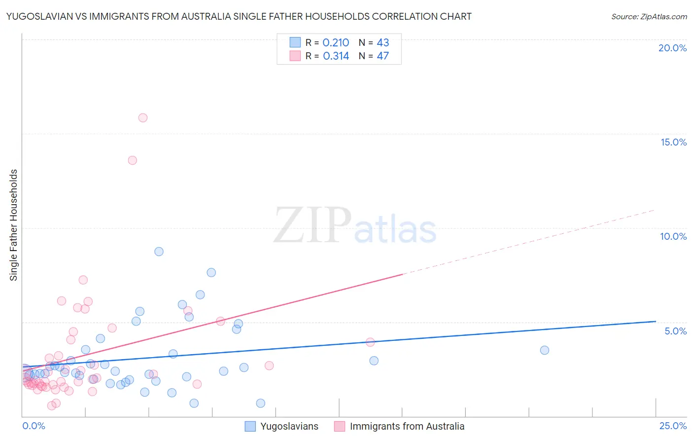 Yugoslavian vs Immigrants from Australia Single Father Households Correlation Chart