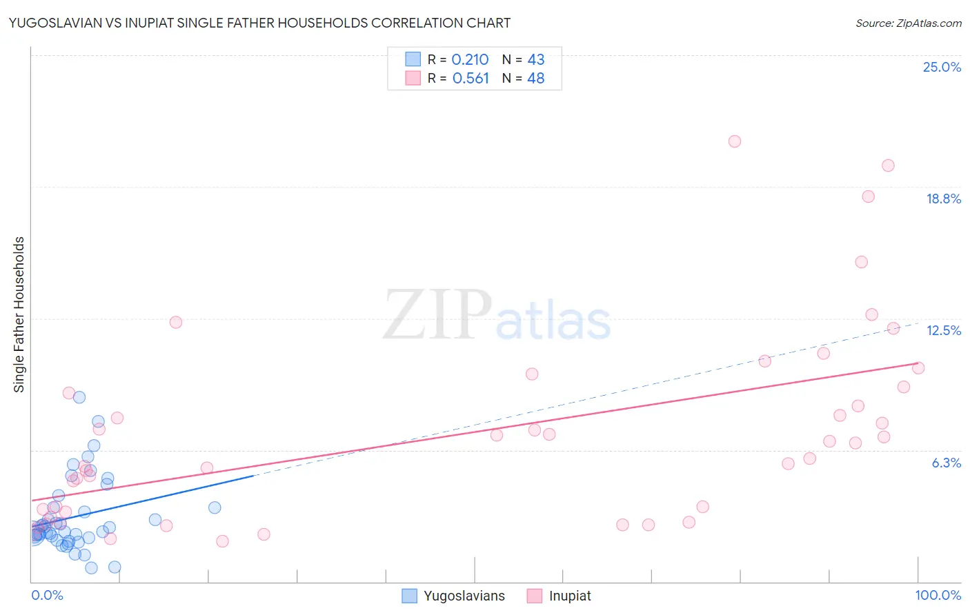 Yugoslavian vs Inupiat Single Father Households Correlation Chart