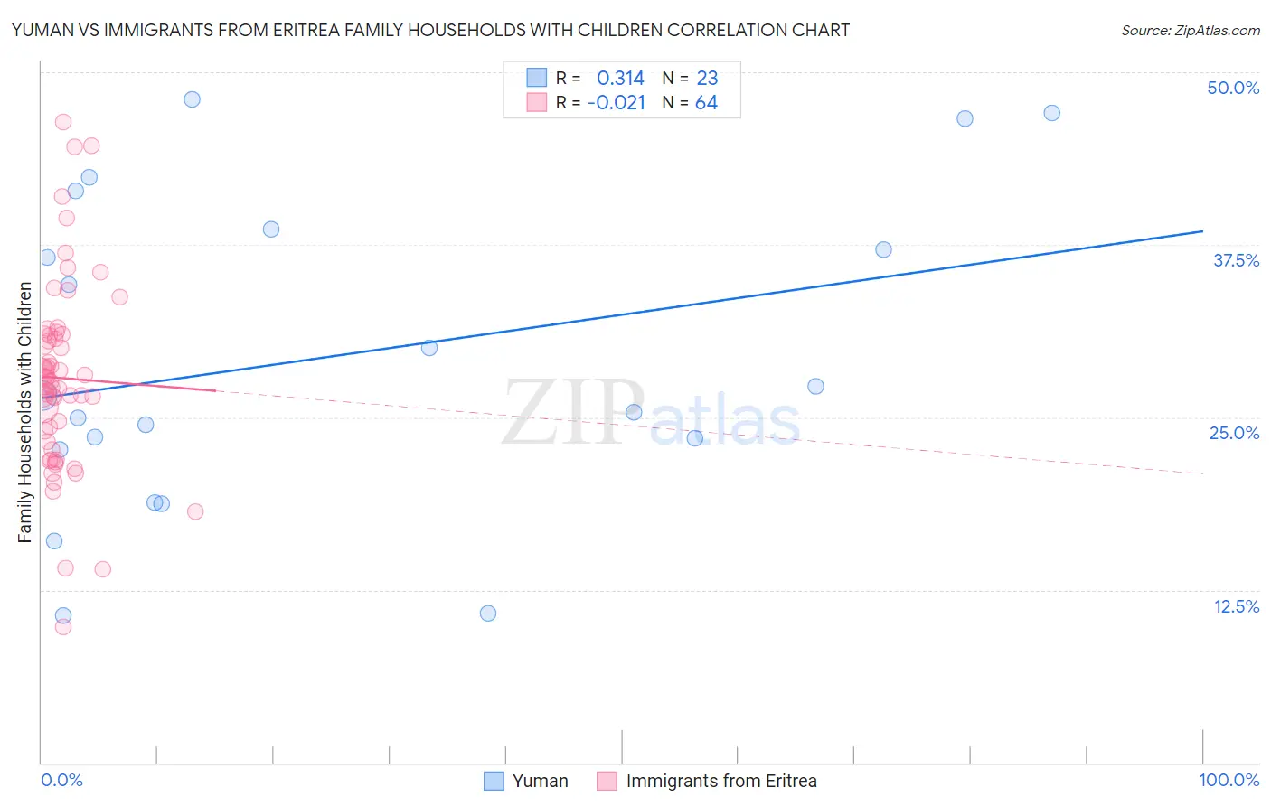 Yuman vs Immigrants from Eritrea Family Households with Children Correlation Chart