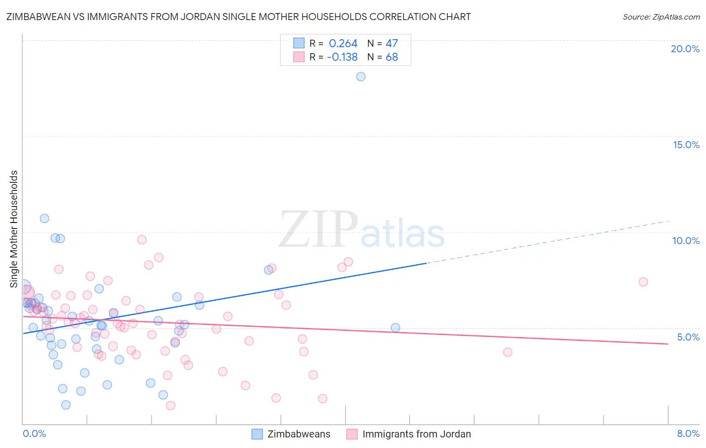 Zimbabwean vs Immigrants from Jordan Single Mother Households Correlation Chart