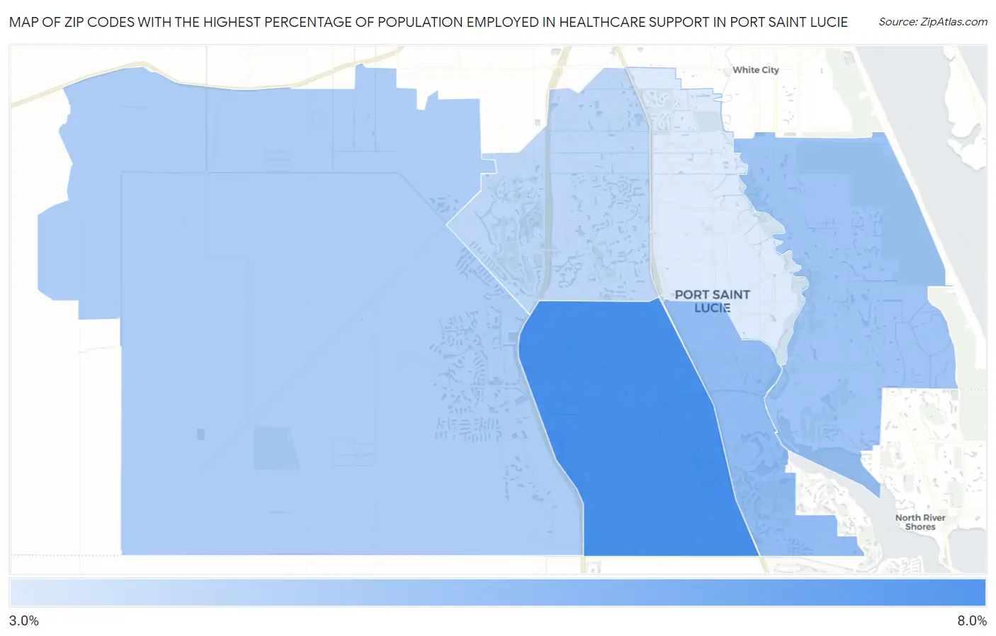 Zip Codes with the Highest Percentage of Population Employed in Healthcare Support in Port Saint Lucie, FL