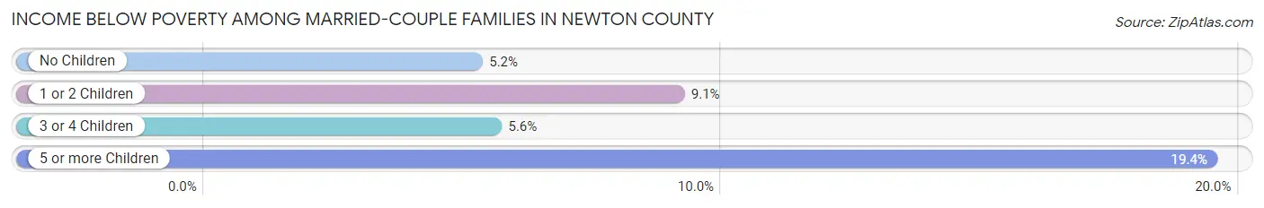Families that are below poverty line in Newton County earn $12,112 less on average than the poverty threshold level.