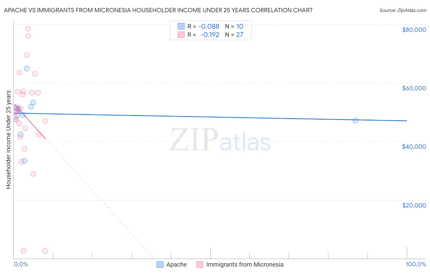 Apache vs Immigrants from Micronesia Householder Income Under 25 years Correlation Chart