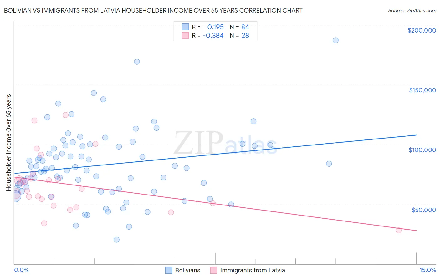 Bolivian vs Immigrants from Latvia Householder Income Over 65 years Correlation Chart