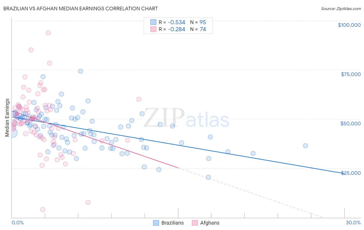 Brazilian vs Afghan Median Earnings Correlation Chart