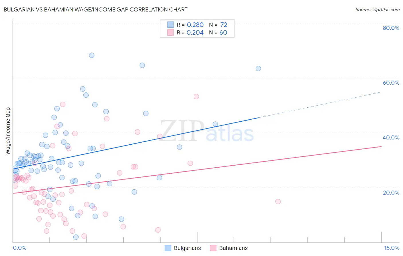 Bulgarian vs Bahamian Wage/Income Gap Correlation Chart