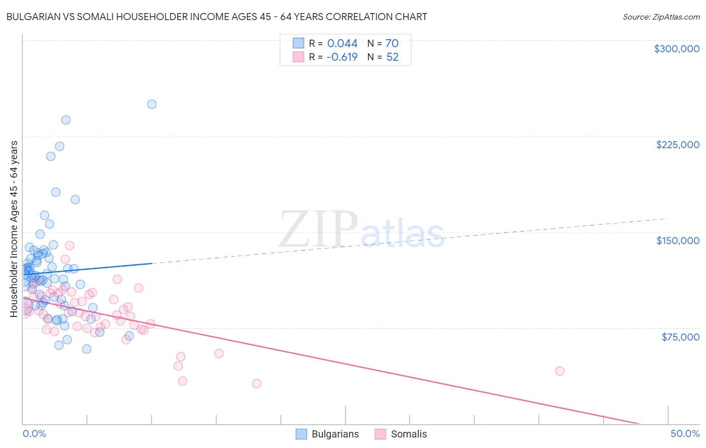 Bulgarian vs Somali Householder Income Ages 45 - 64 years Correlation Chart