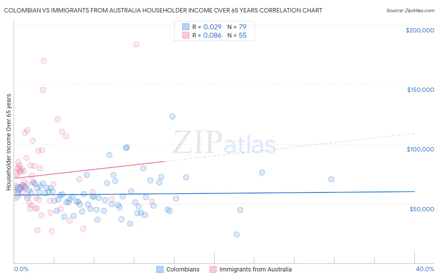 Colombian vs Immigrants from Australia Householder Income Over 65 years Correlation Chart