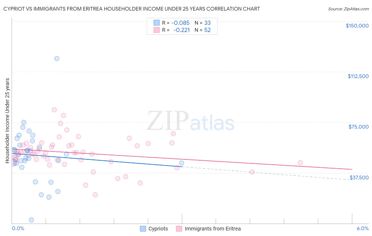 Cypriot vs Immigrants from Eritrea Householder Income Under 25 years Correlation Chart