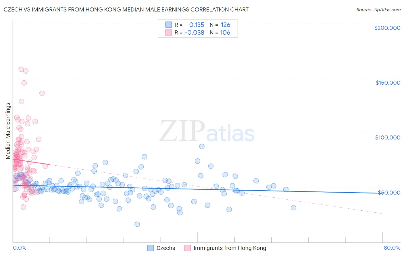 Czech vs Immigrants from Hong Kong Median Male Earnings Correlation Chart