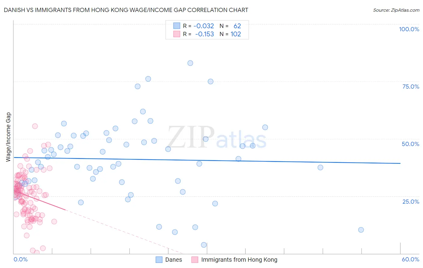 Danish vs Immigrants from Hong Kong Wage/Income Gap Correlation Chart