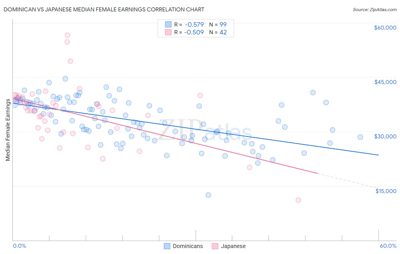 Dominican vs Japanese Median Female Earnings Correlation Chart