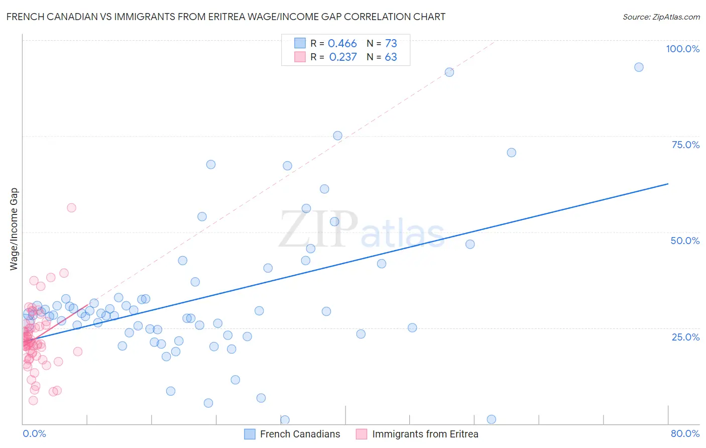 French Canadian vs Immigrants from Eritrea Wage/Income Gap Correlation Chart