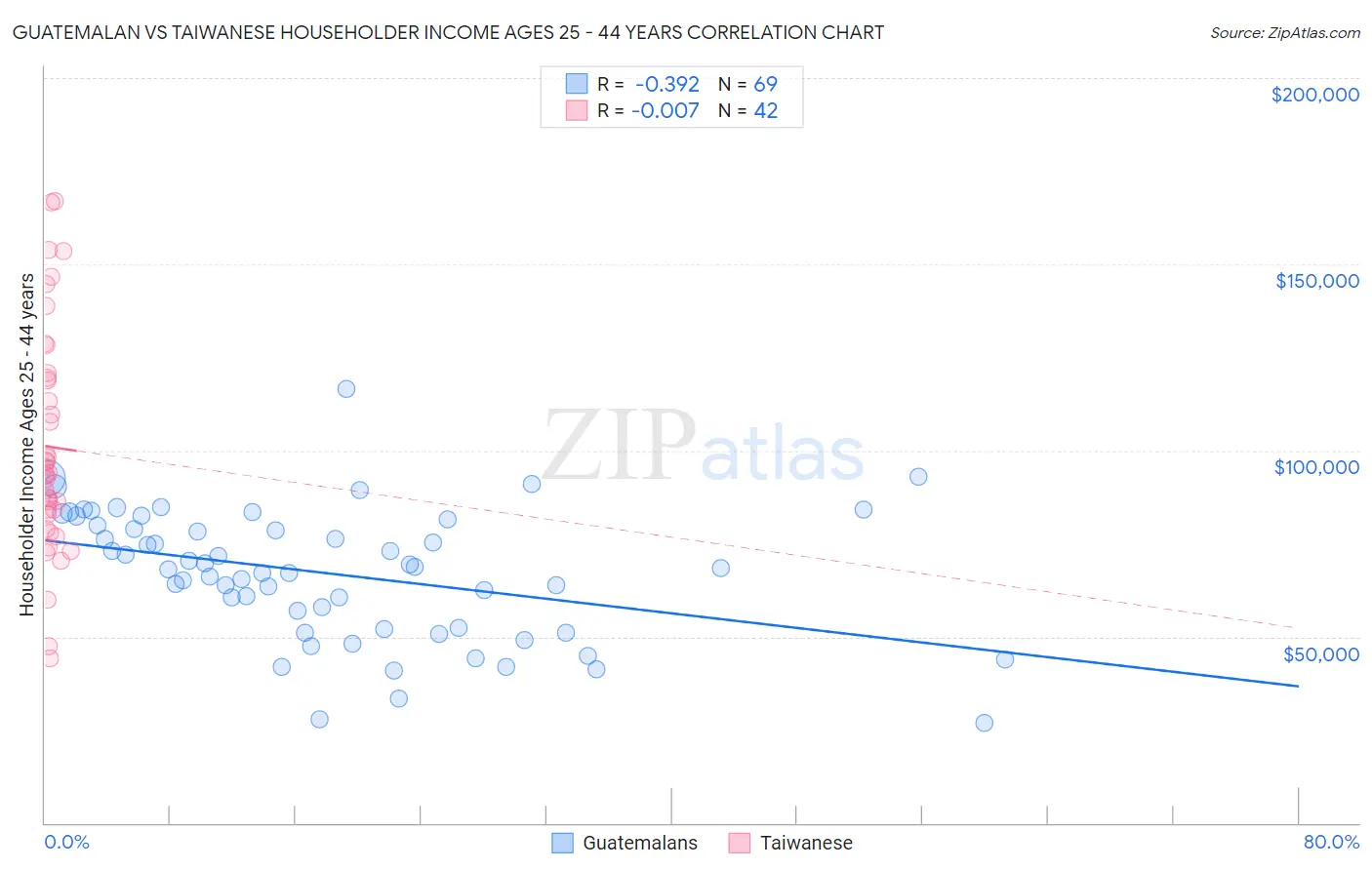 Guatemalan vs Taiwanese Householder Income Ages 25 - 44 years Correlation Chart