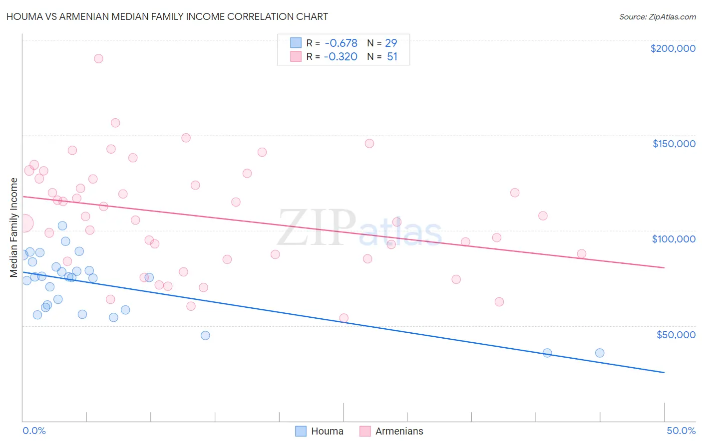 Houma vs Armenian Median Family Income Correlation Chart