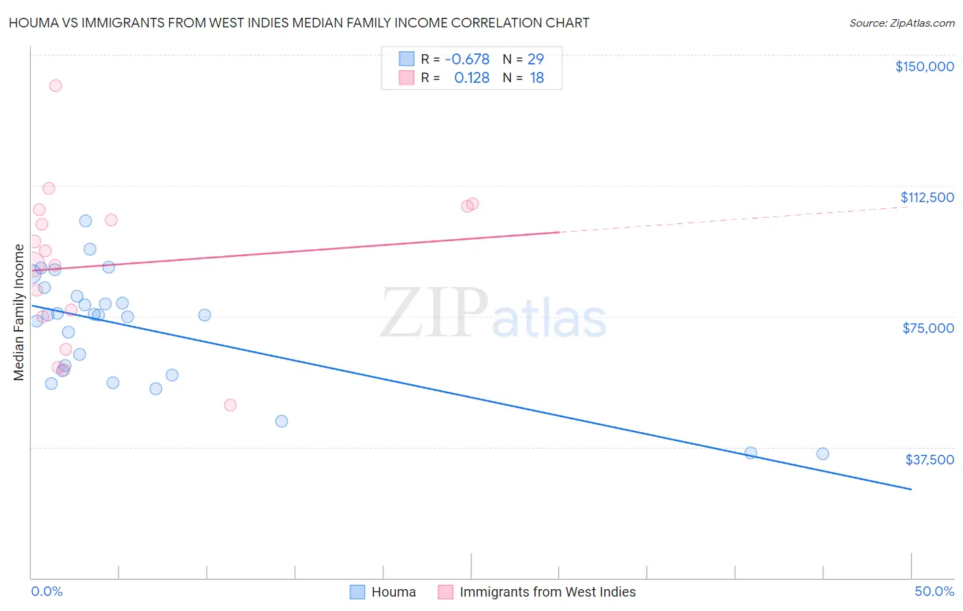 Houma vs Immigrants from West Indies Median Family Income Correlation Chart