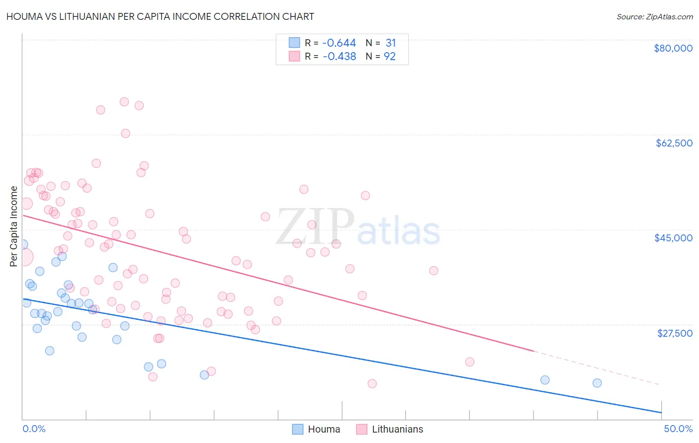Houma vs Lithuanian Per Capita Income Correlation Chart