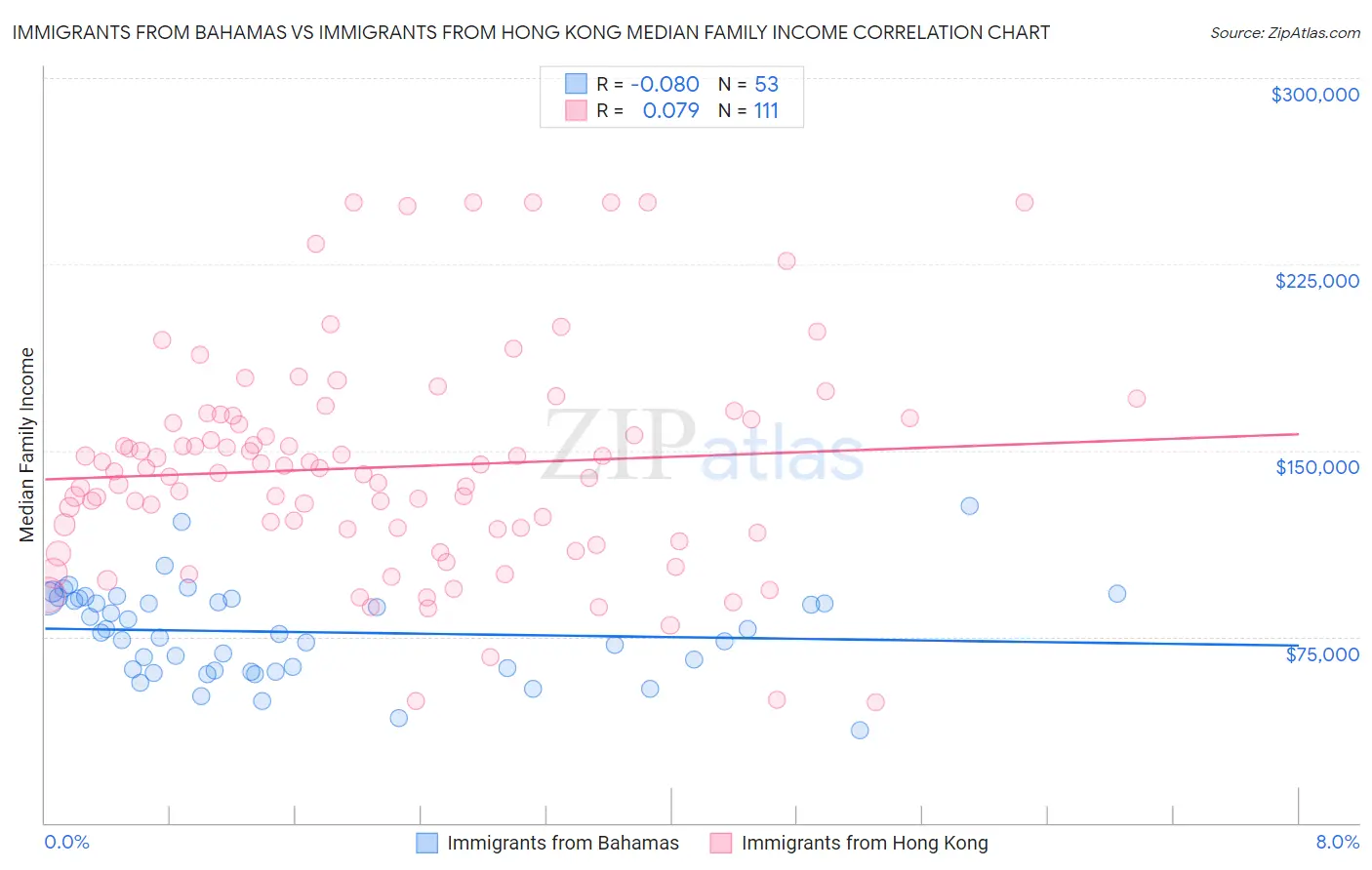 Immigrants from Bahamas vs Immigrants from Hong Kong Median Family Income Correlation Chart