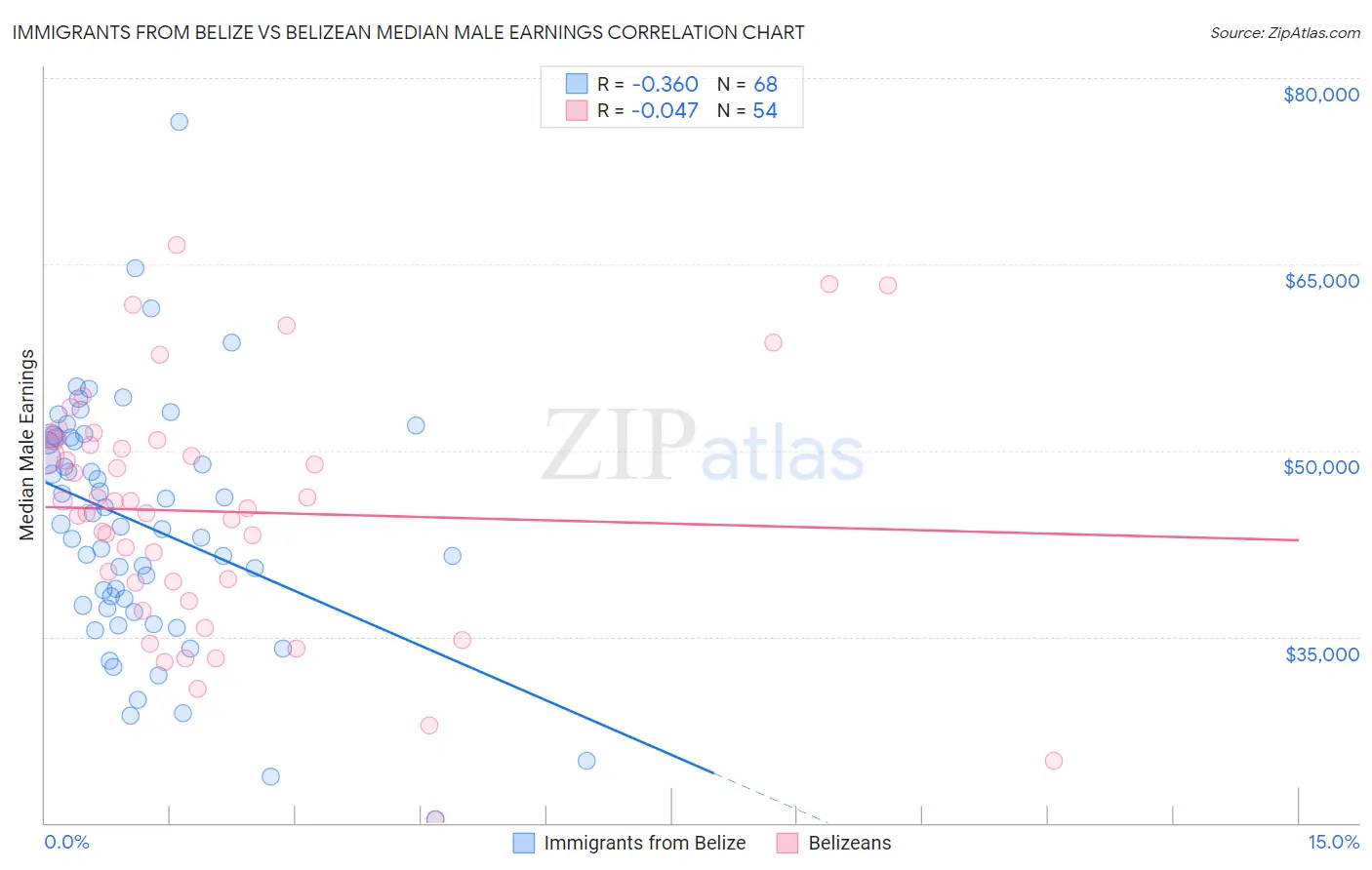 Immigrants from Belize vs Belizean Median Male Earnings Correlation Chart