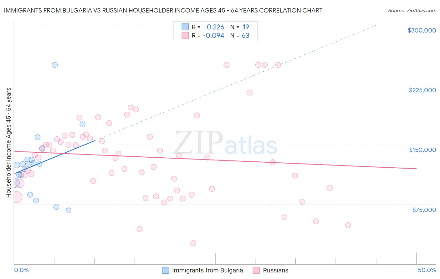 Immigrants from Bulgaria vs Russian Householder Income Ages 45 - 64 years Correlation Chart