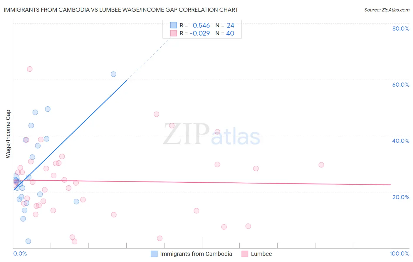 Immigrants from Cambodia vs Lumbee Wage/Income Gap Correlation Chart