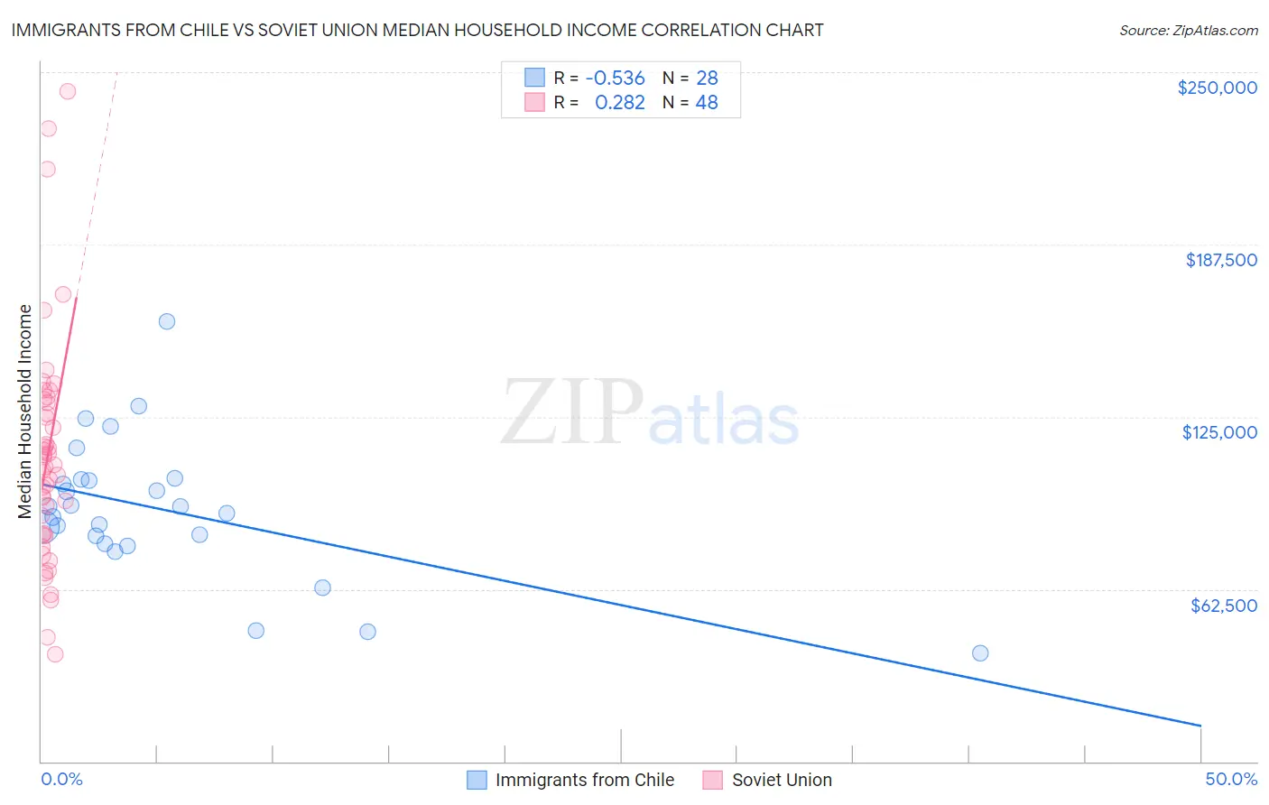 Immigrants from Chile vs Soviet Union Median Household Income Correlation Chart