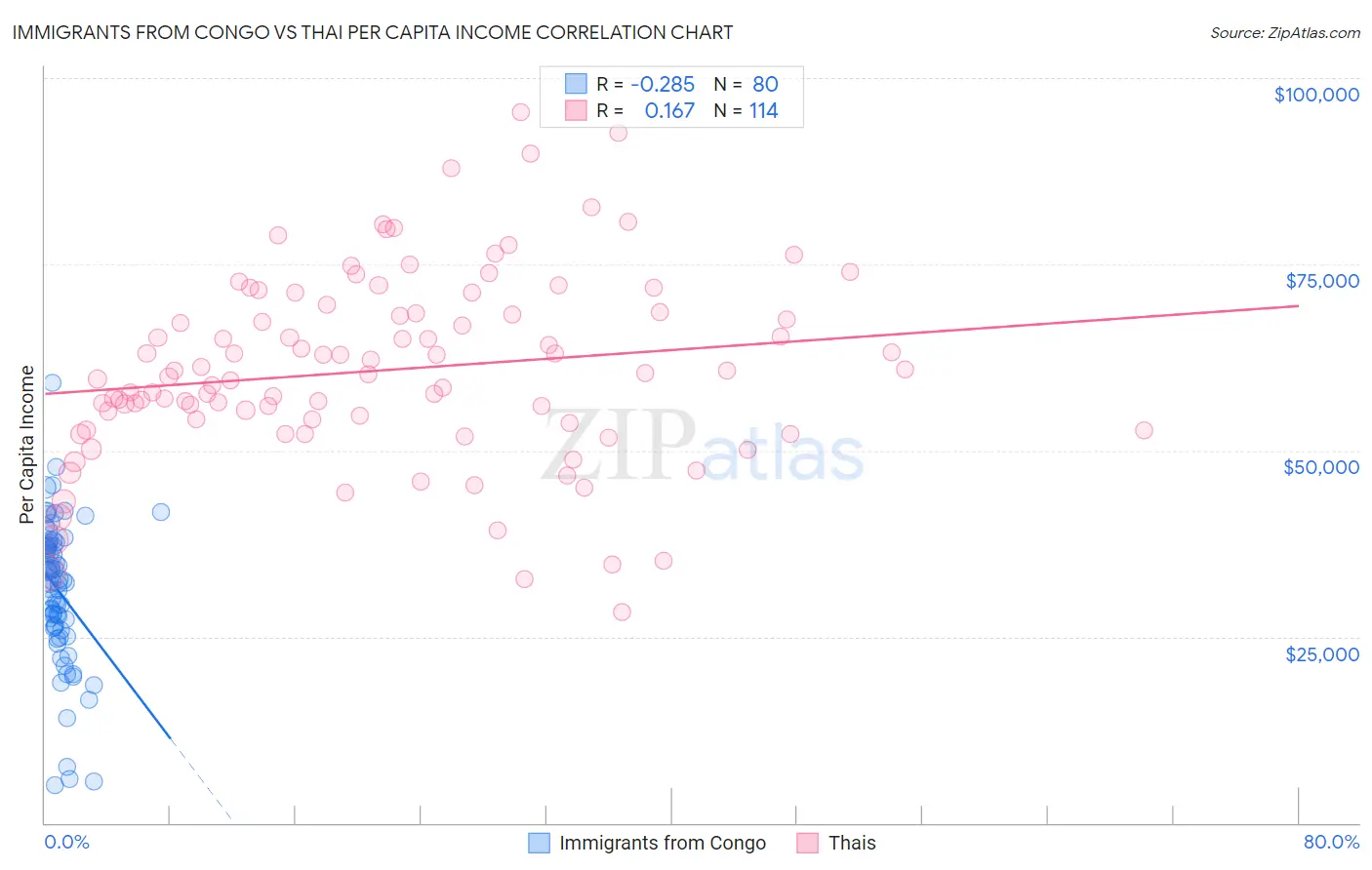 Immigrants from Congo vs Thai Per Capita Income Correlation Chart