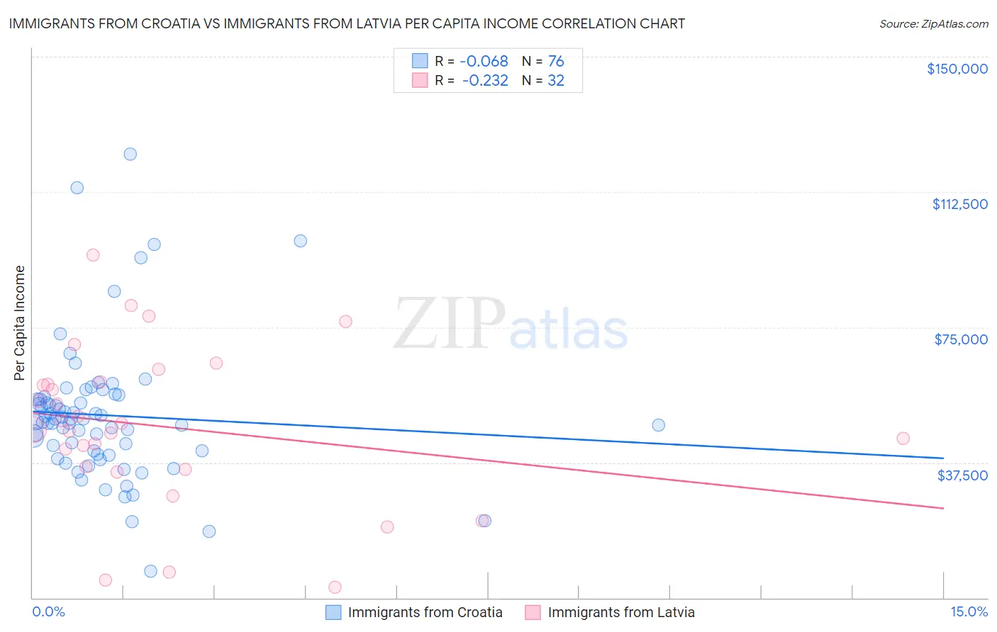 Immigrants from Croatia vs Immigrants from Latvia Per Capita Income Correlation Chart