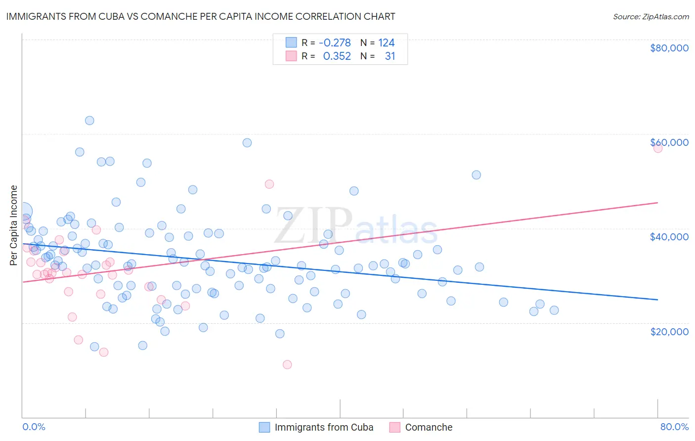Immigrants from Cuba vs Comanche Per Capita Income Correlation Chart
