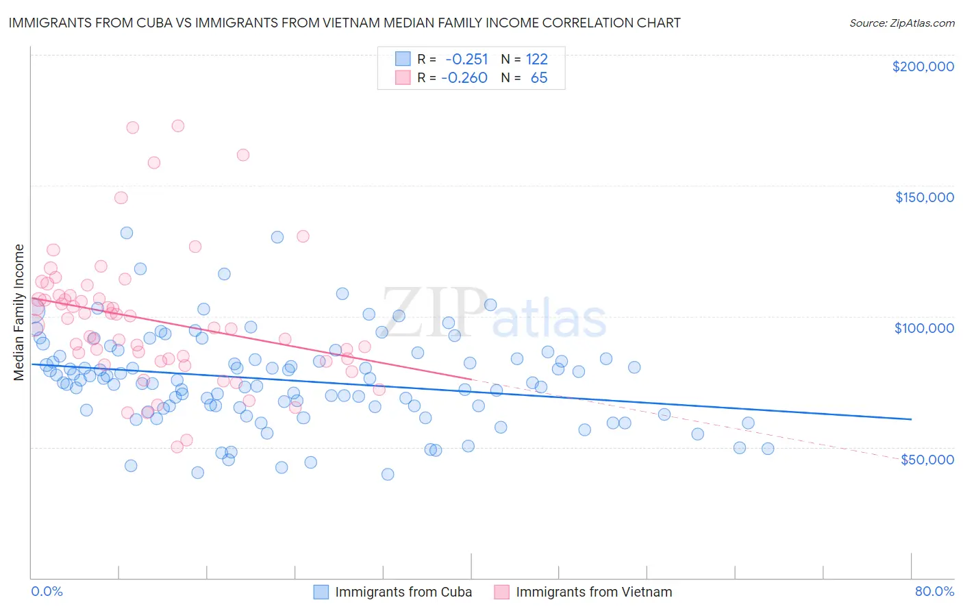 Immigrants from Cuba vs Immigrants from Vietnam Median Family Income Correlation Chart