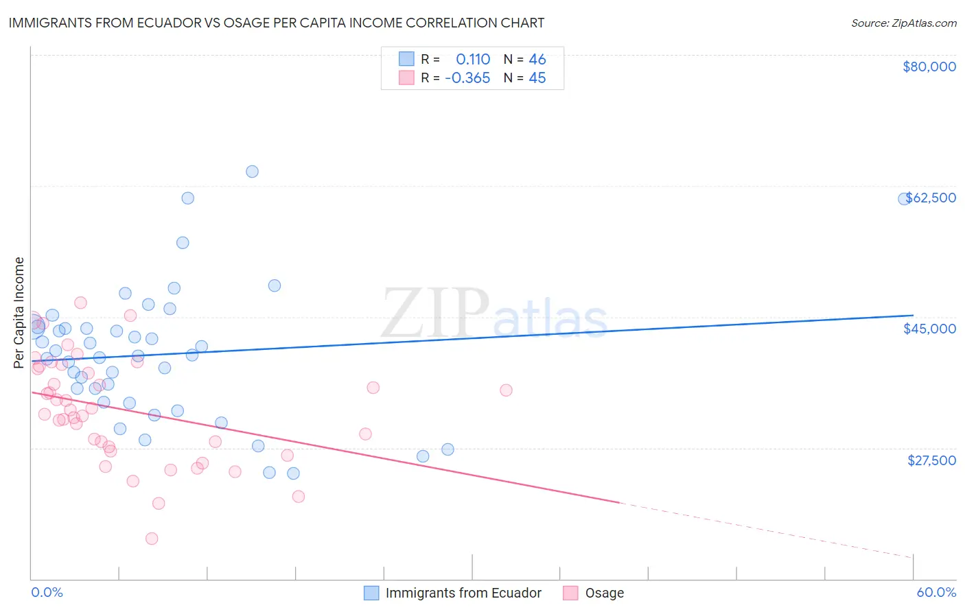 Immigrants from Ecuador vs Osage Per Capita Income Correlation Chart