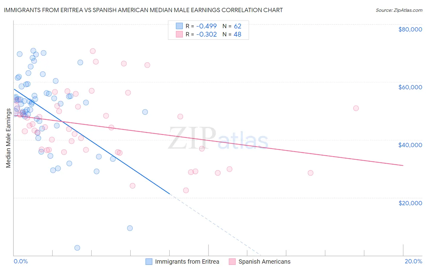 Immigrants from Eritrea vs Spanish American Median Male Earnings Correlation Chart