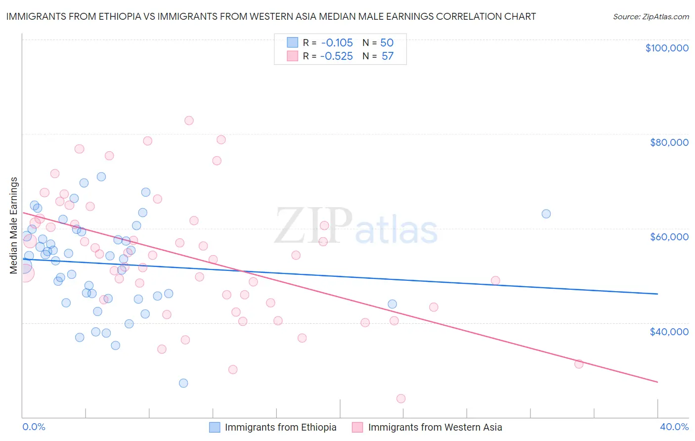 Immigrants from Ethiopia vs Immigrants from Western Asia Median Male Earnings Correlation Chart