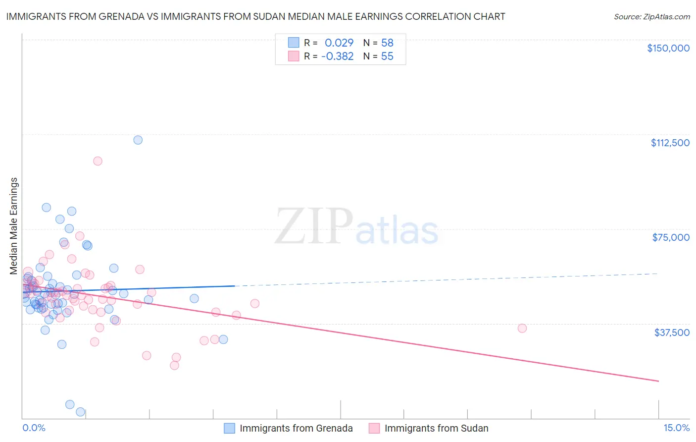 Immigrants from Grenada vs Immigrants from Sudan Median Male Earnings Correlation Chart