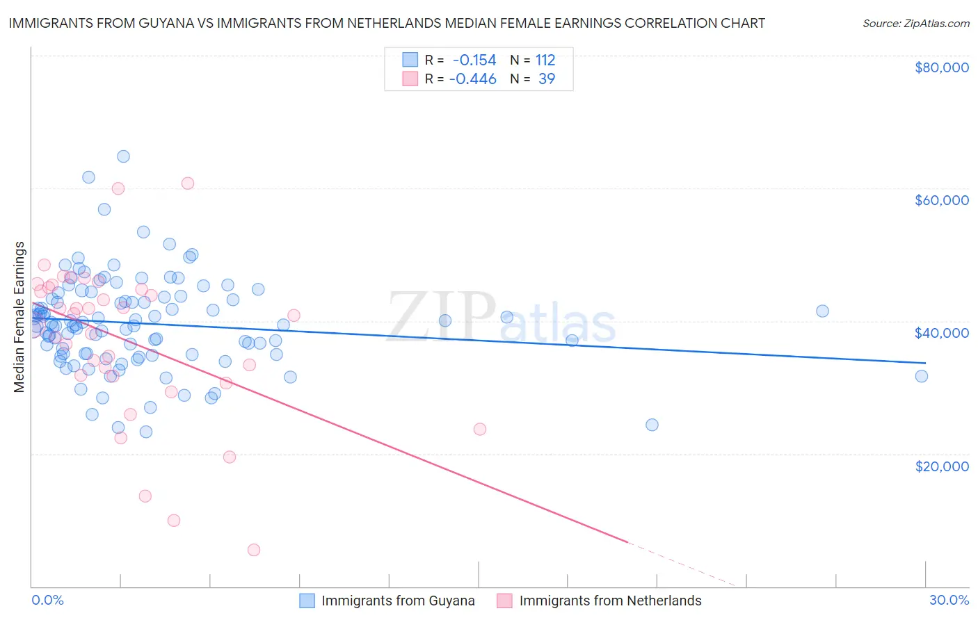 Immigrants from Guyana vs Immigrants from Netherlands Median Female Earnings Correlation Chart