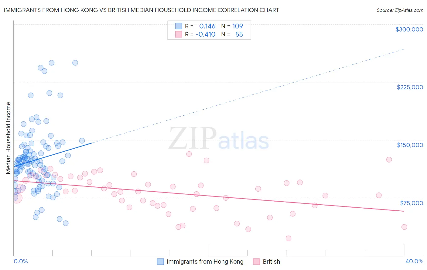 Immigrants from Hong Kong vs British Median Household Income Correlation Chart