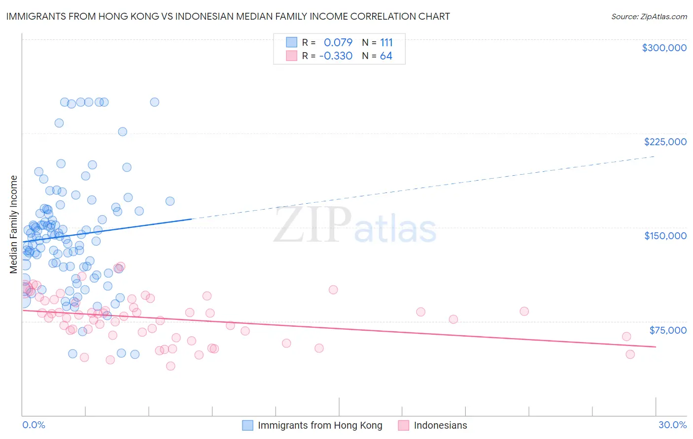 Immigrants from Hong Kong vs Indonesian Median Family Income Correlation Chart