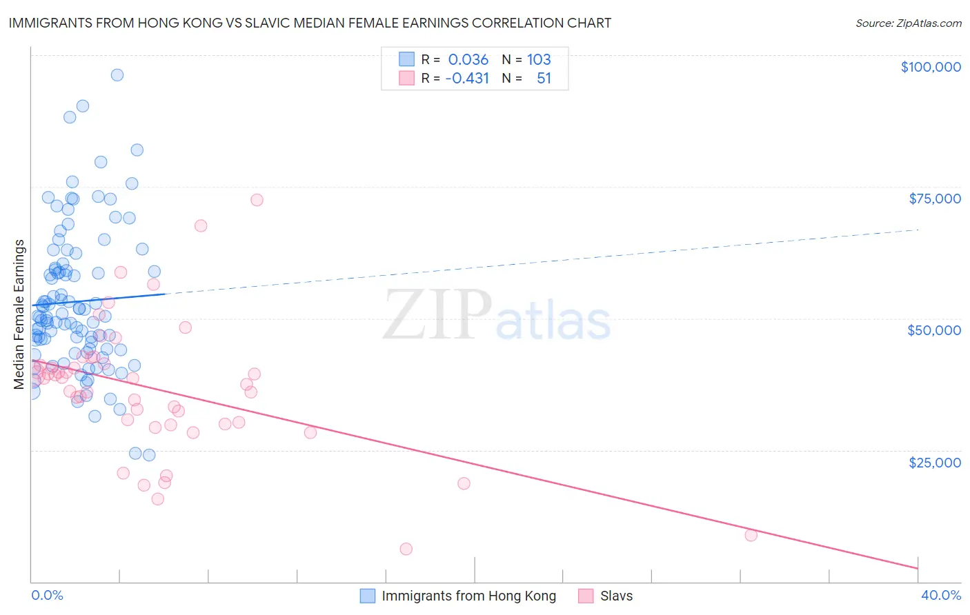 Immigrants from Hong Kong vs Slavic Median Female Earnings Correlation Chart